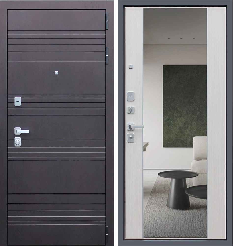 Надежная входная Дверь Дуэт с зеркалом премиум класса по цене 49 920 руб. Большая толщина стали защитит от проникновения в ваш дом, квартиру или коттедж. Используется очень качественная фурнитура: замки, цилиндры, ручки, защелки. Покрытие и отделка двери изготовлено под внимательным контролем производителя. Дверь имеет долгий срок службы и гарантию.
