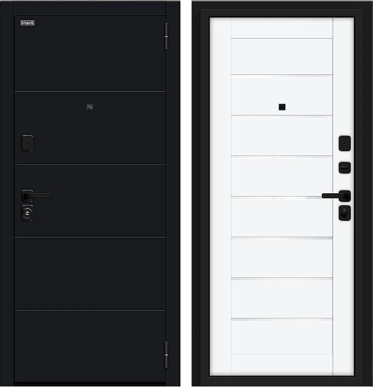 Надежная входная Дверь Браво Прайм/SBlack-Black Shell/White Silk премиум класса по цене 42 970 руб. Большая толщина стали защитит от проникновения в ваш дом, квартиру или коттедж. Используется очень качественная фурнитура: замки, цилиндры, ручки, защелки. Покрытие и отделка двери изготовлено под внимательным контролем производителя. Дверь имеет долгий срок службы и гарантию.